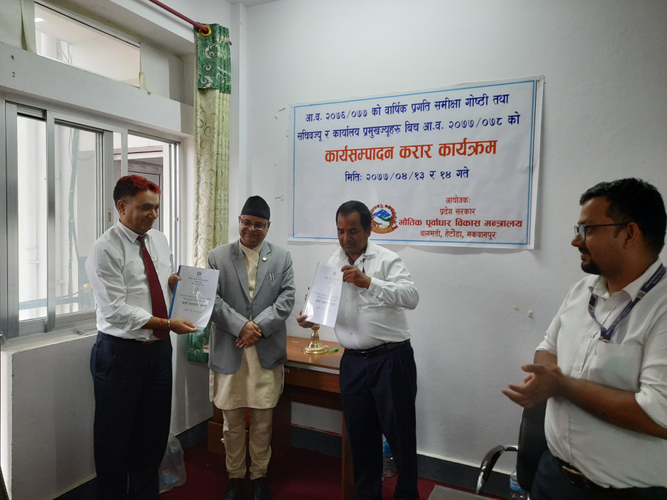 आर्थिक वर्ष २०७६/०७७ को वार्षिक प्रगति समीक्षा गोष्ठी तथा मन्त्रालयका सचिव र मातहतका कार्यालय प्रमुख बीच आ.व. २०७७/०७८ को वार्षिक कार्यसम्पादन करार कार्यक्रम